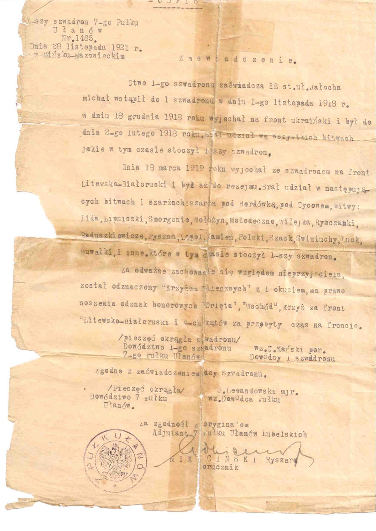Ur. 1900r. Żołnierz wojny polsko – sowieckiej w 1920r.